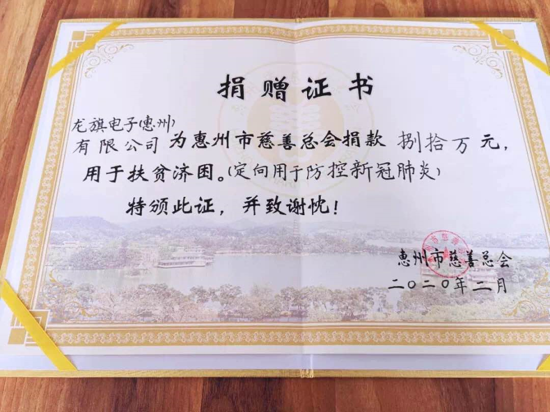 2月17日,在惠州市迎來復(fù)工大潮首日,龍旗電子負責(zé)人帶著集團領(lǐng)導(dǎo)的囑托和問候,前往惠州市慈善總會辦理認捐手續(xù),定向現(xiàn)金捐款80萬元,受到市慈善總會駐會領(lǐng)導(dǎo)的熱情接待,慈善總會代表市政府對龍旗集團的義行善舉表示深深的謝意,承諾將盡快把這份愛心送到災(zāi)區(qū),送到災(zāi)區(qū)人民手中,并祝愿龍旗在惠州這片熱土上發(fā)展得越來越好。